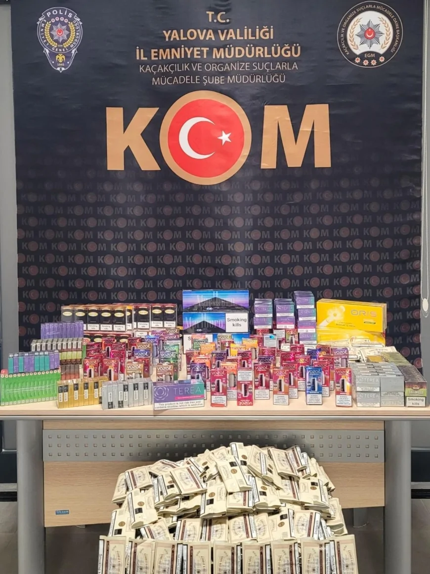 Yalova Emniyet Müdürlüğü Kaçakçılık ve Organize Suçlarla Mücadele Şube Müdürlüğü ekiplerince 16–20 Aralık 2025 tarihleri arasında yürütülen çalışmalarda; doldurulmuş makaron, gümrük kaçağı sigara, elektronik sigara, puro, pipo tütünü ve 1,5 ton açık kıyılmış tütün ele geçirildi. Operasyonlarda 3 şüpheli hakkında adli tahkikat başlatıldı.