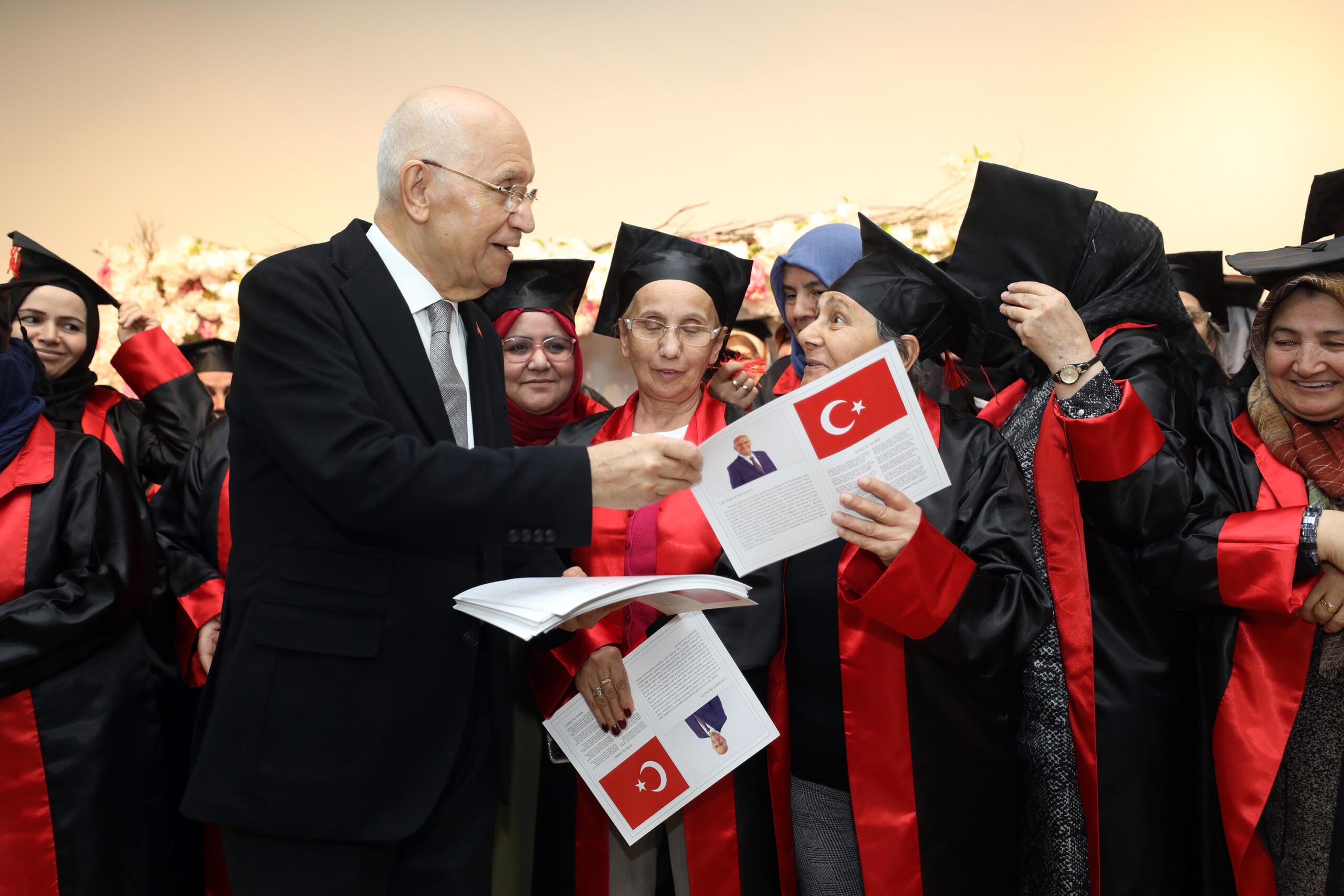 Mezuniyet töreninde kursiyerler şiirler okudu, yaşadıkları dönüşümü anlattı. Okuma yazma öğrenmenin kendilerine kazandırdığı özgüveni dile getiren kursiyerler, “Artık kaybolmadan adres soracağız, otobüse bineceğiz, bankaya gideceğiz. Özgürüz çünkü artık okuyor ve yazıyoruz.” dedi.